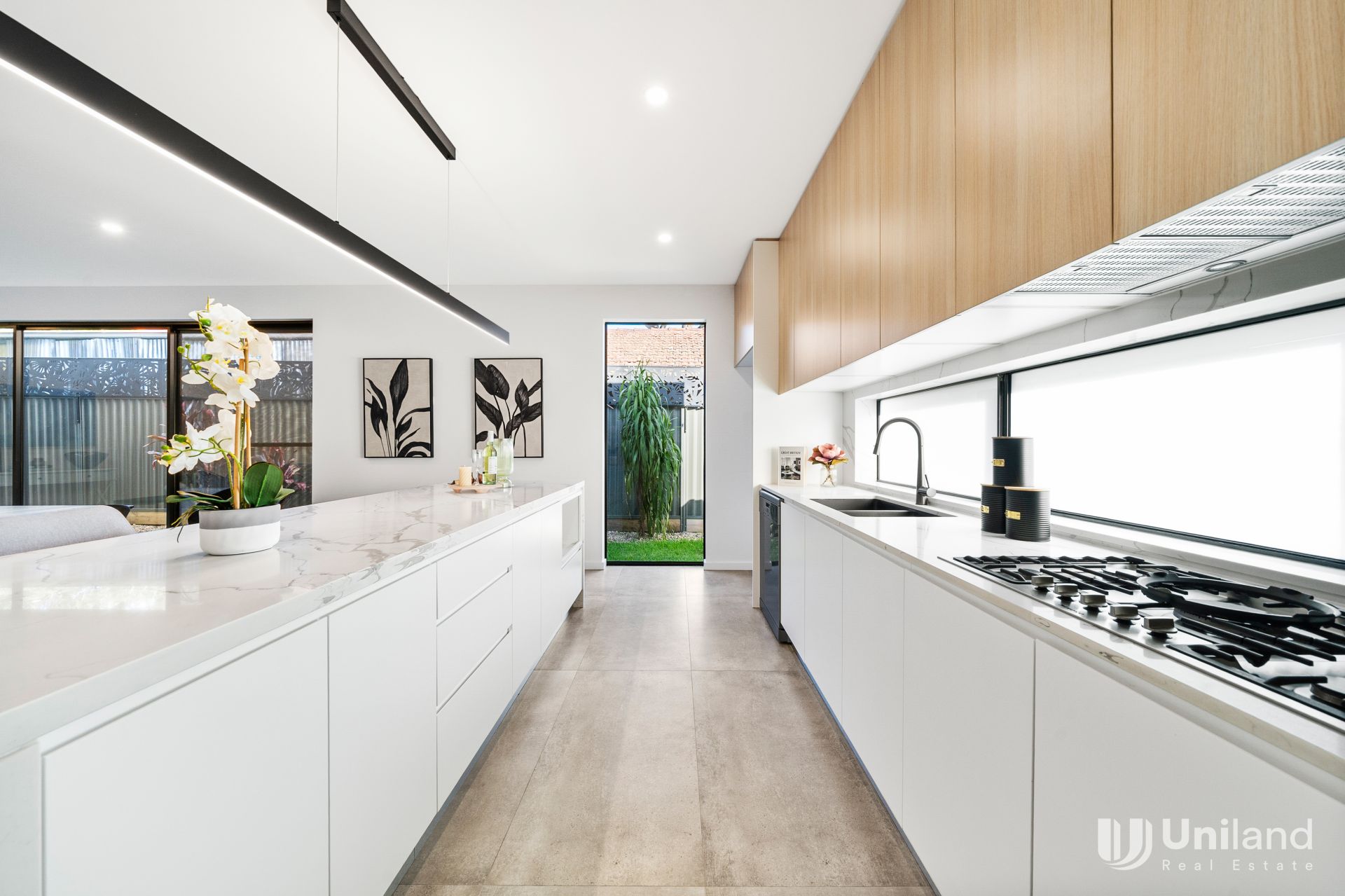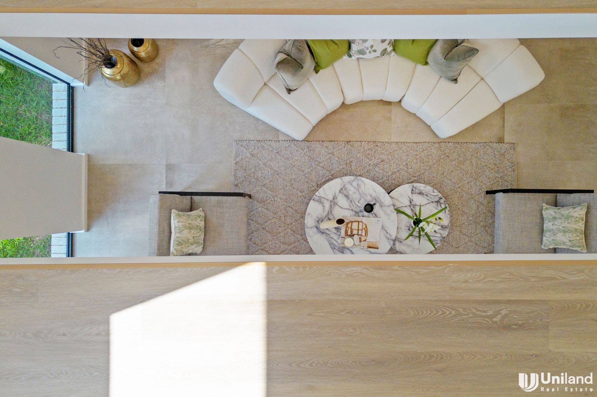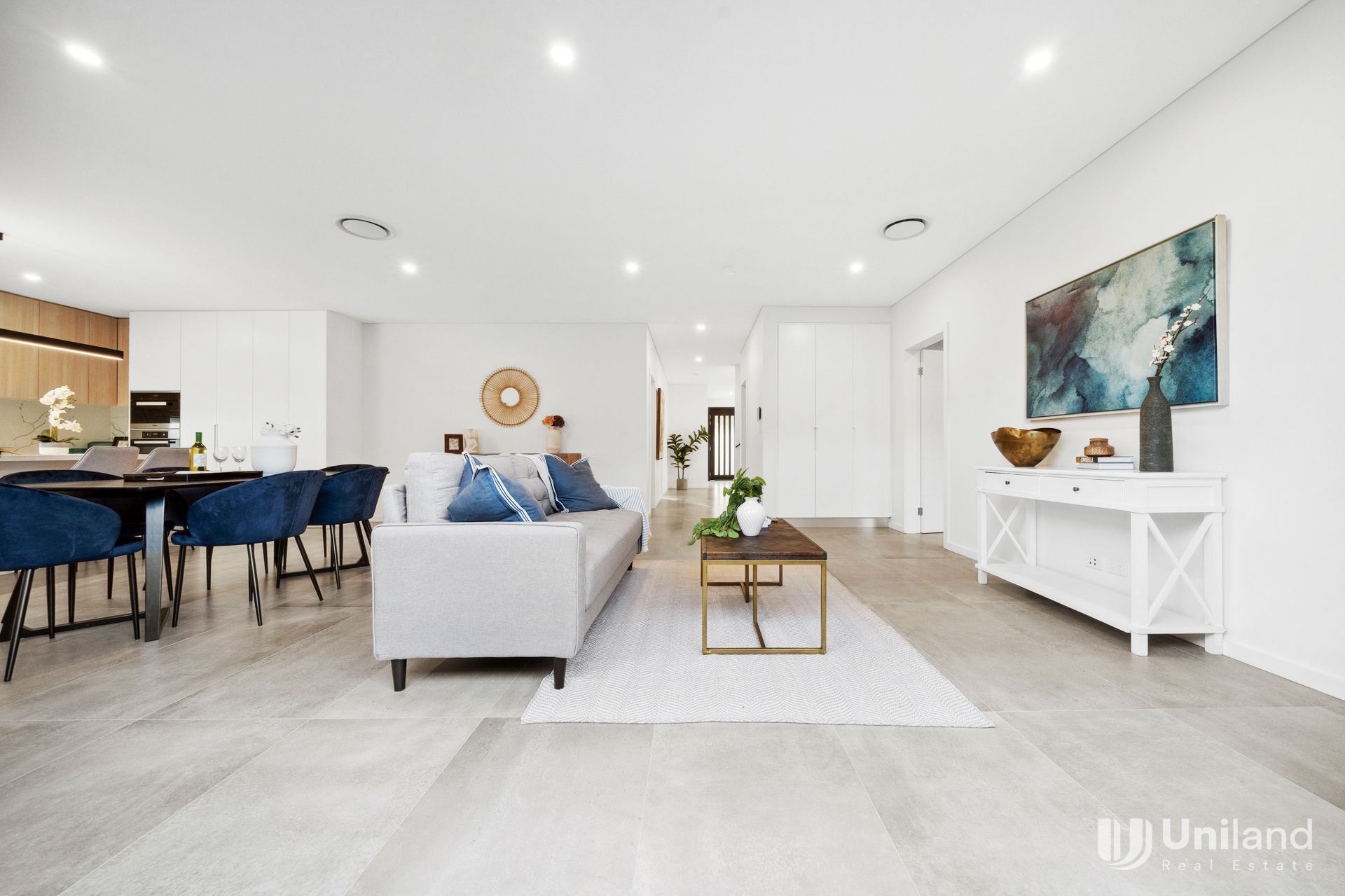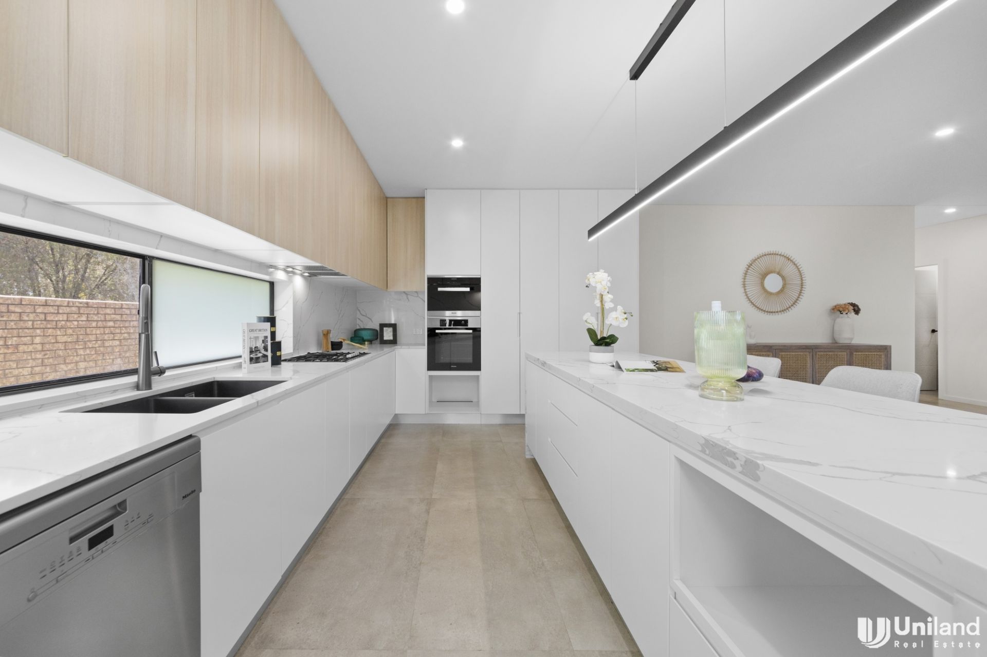 The multiple living area is grand proportioned, providing an extensive entertaining space for gatherings with family and friends. The abundance of windows floods the space with natural light, creating a warm and inviting atmosphere that complements the elegant design. The modern kitchen is a chef's delight, boasting a sleek stone benchtop and gas cooktop. High-end appliances and ample cabinetry make cooking a pleasure. The enormous open plan living and dining area seamlessly flows to the outdoor area. The secure, low maintenance landscaped rear garden provides a safe space for small children and pets to play, making it an inviting space year-round.