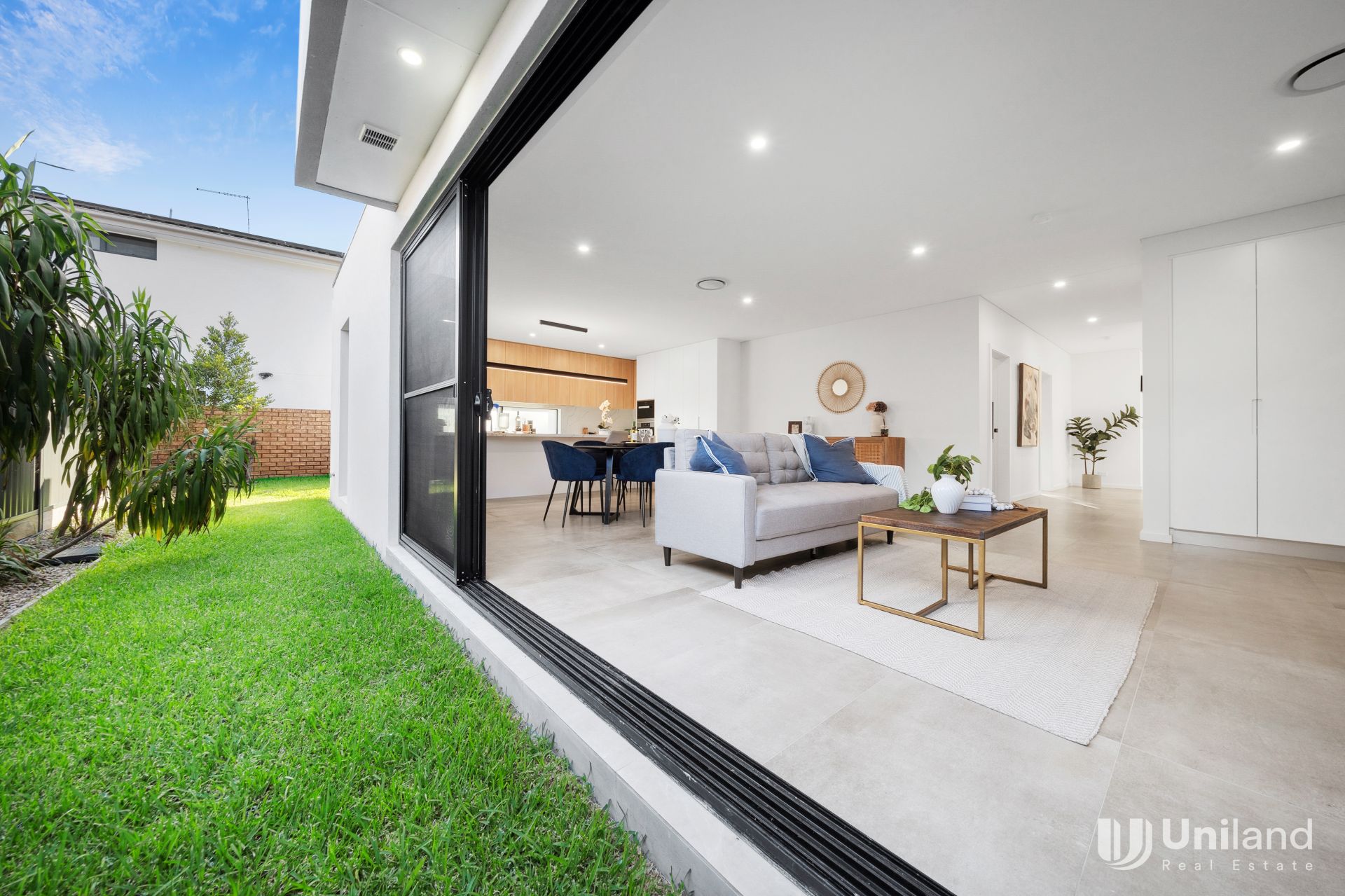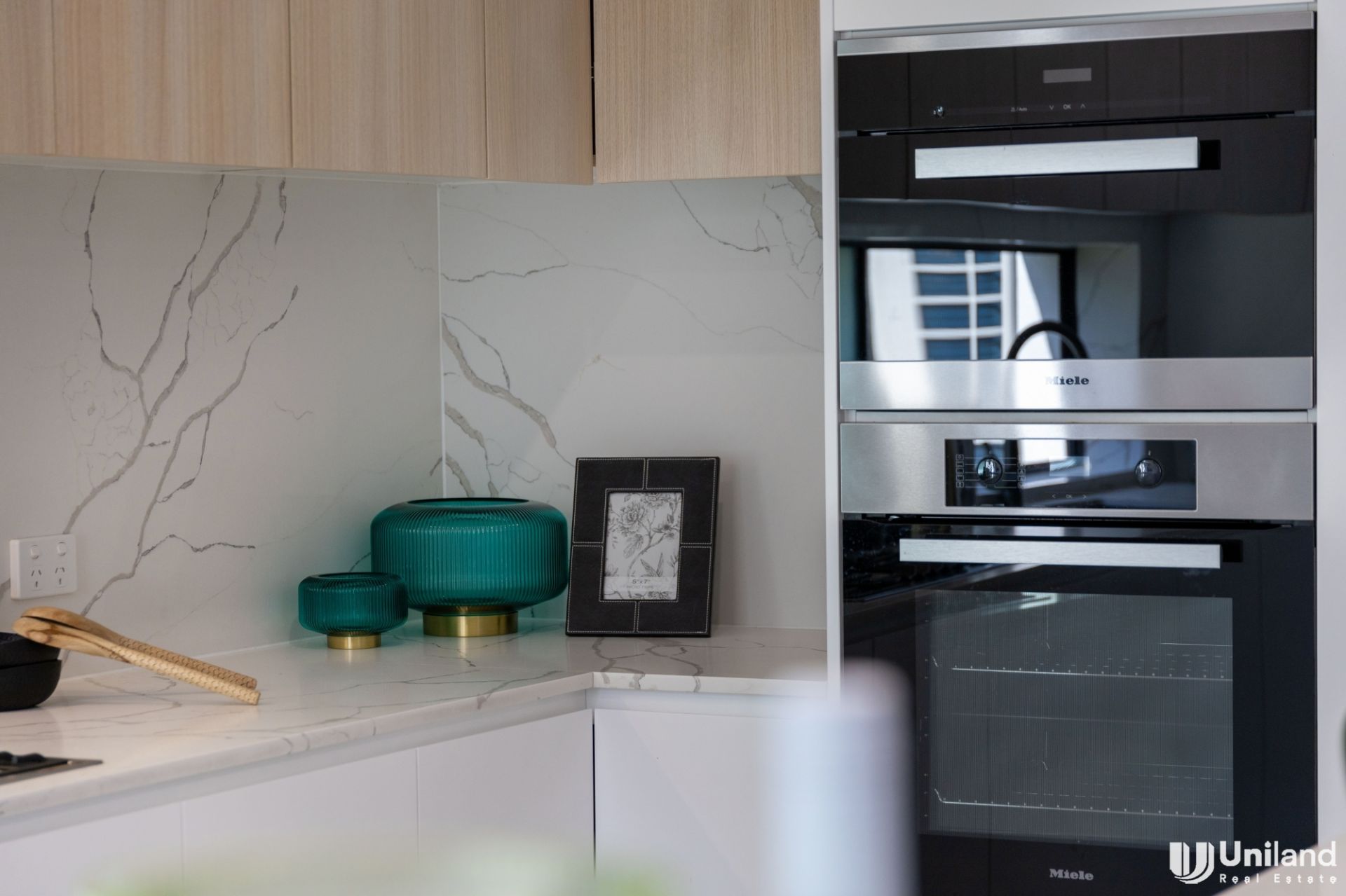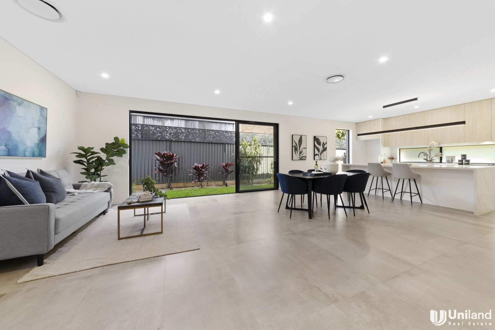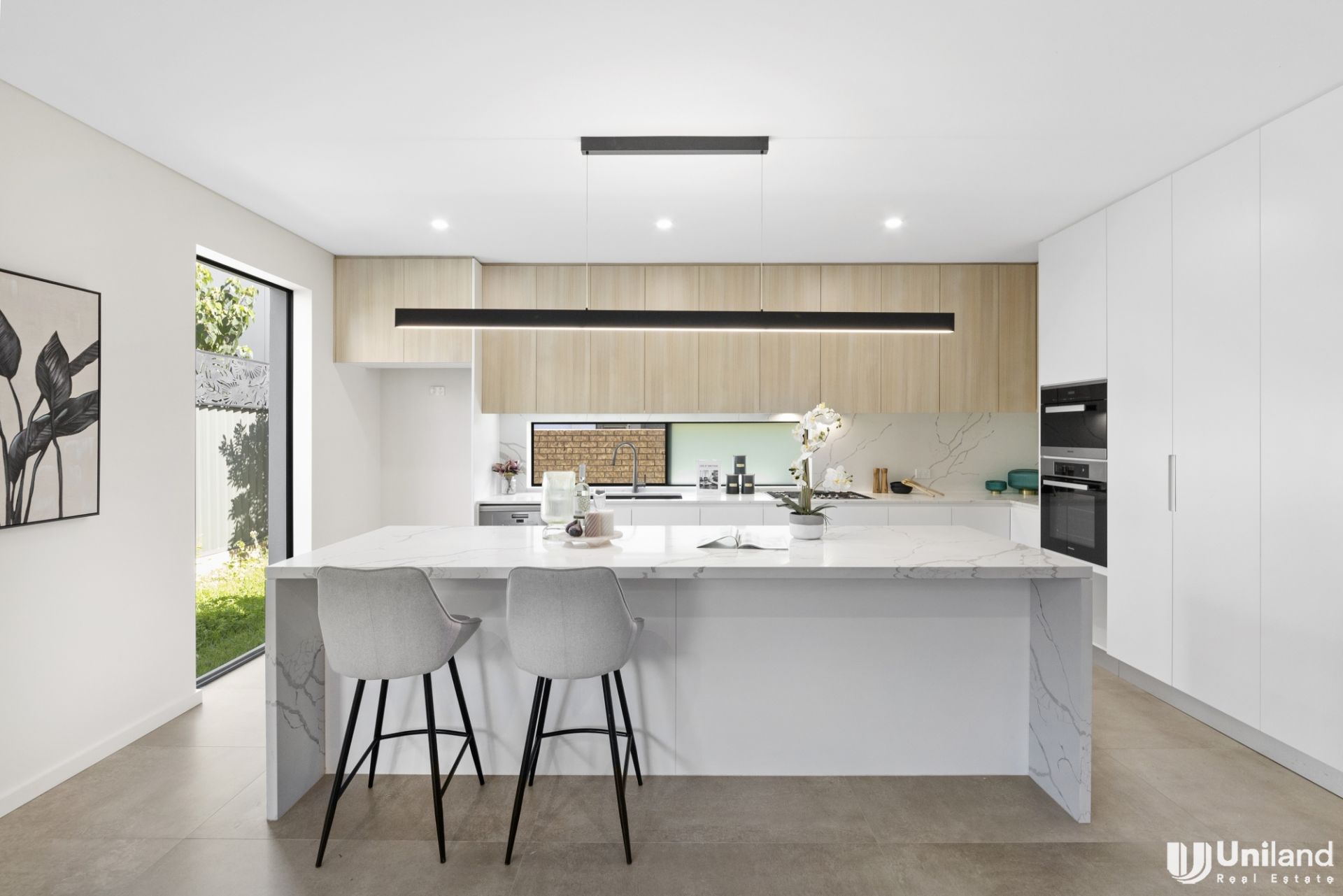The multiple living area is grand proportioned, providing an extensive entertaining space for gatherings with family and friends. The abundance of windows floods the space with natural light, creating a warm and inviting atmosphere that complements the elegant design. The modern kitchen is a chef's delight, boasting a sleek stone benchtop and gas cooktop. High-end appliances and ample cabinetry make cooking a pleasure. The enormous open plan living and dining area seamlessly flows to the outdoor area. The secure, low maintenance landscaped rear garden provides a safe space for small children and pets to play, making it an inviting space year-round.