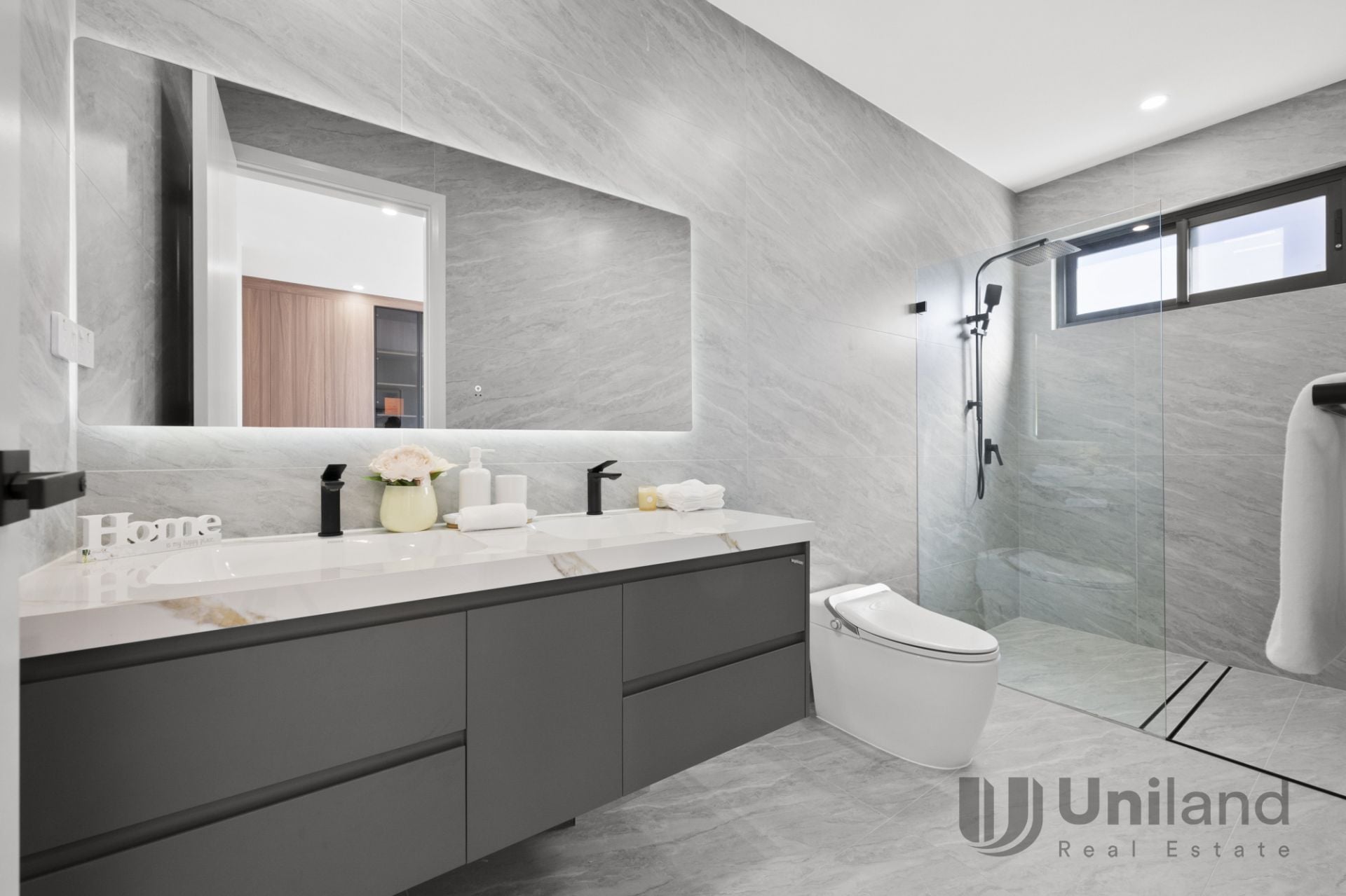 • Premium inclusions: ducted air conditioning, video intercom, alarm system, fully tiled bathrooms, LED-lit mirrors, and designer lighting throughout