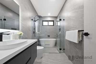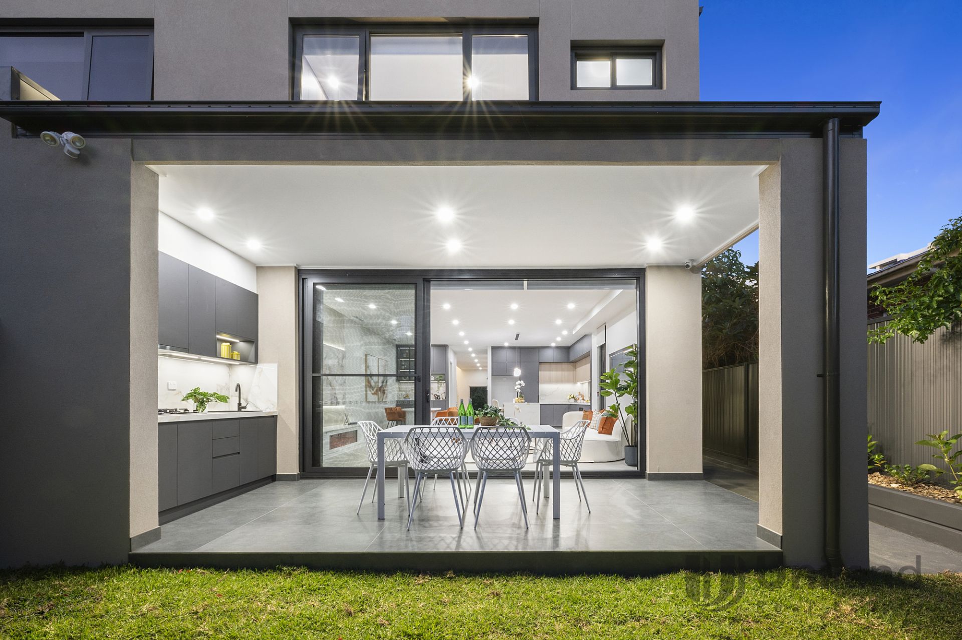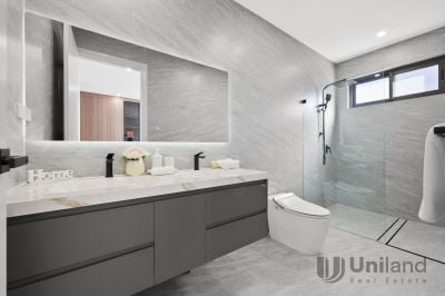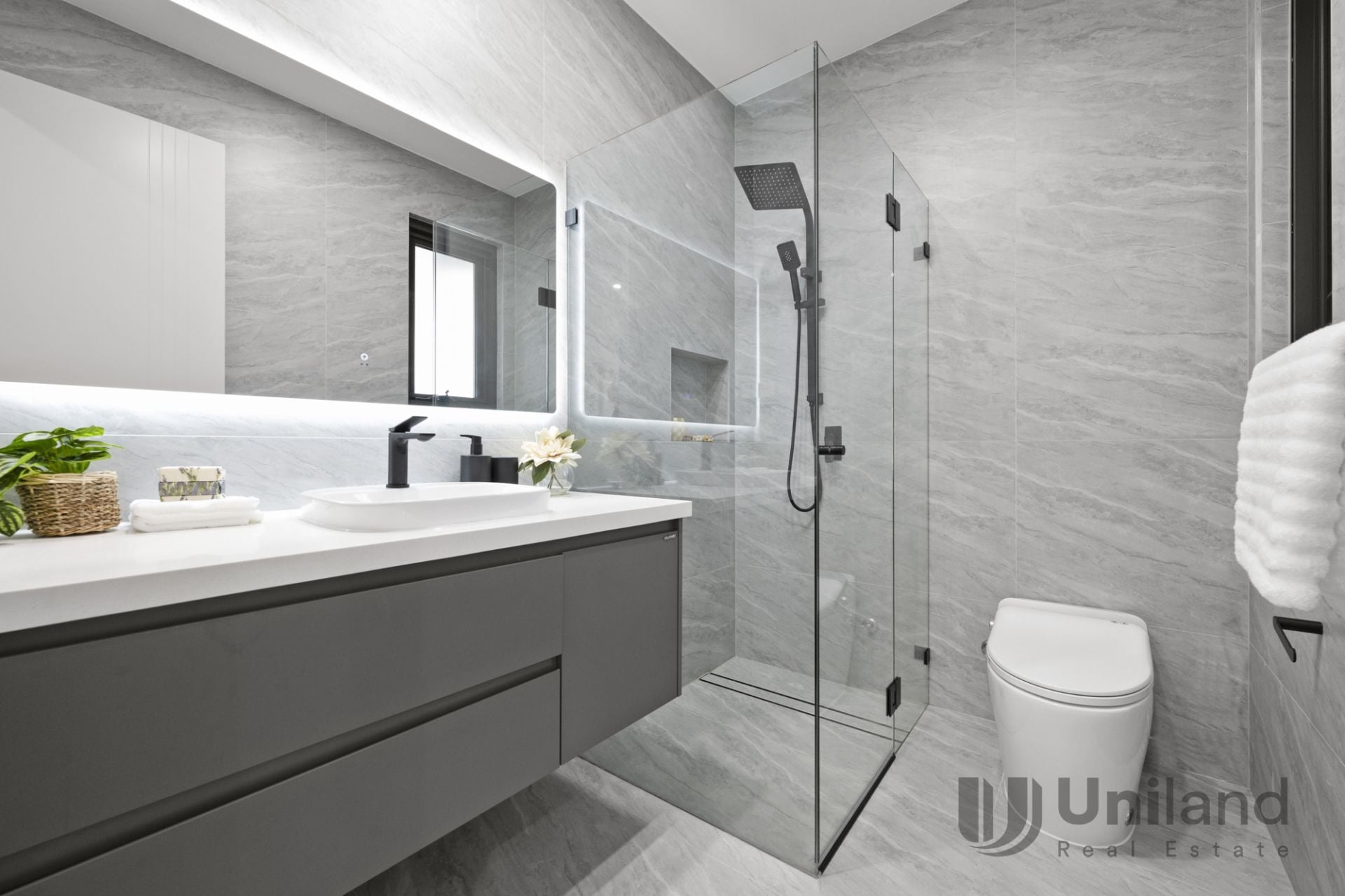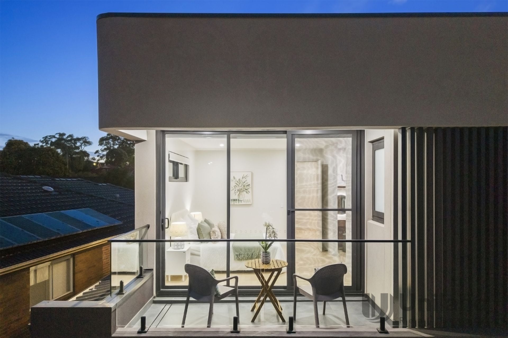 Spread across two levels, this brand-new brick duplex embodies the essence of modern luxury living - featuring keyless entry, ducted air conditioning, dual living zones, and an abundance of natural light throughout. At the heart of the home, a sophisticated kitchen showcases premium Bosch appliances, stone benchtops, and a sleek island breakfast bar illuminated by elegant pendant lighting. Upstairs, a collection of beautifully appointed bedrooms each enjoys a private ensuite, while the primary suite is distinguished by a retreat/study area and an exclusive balcony.