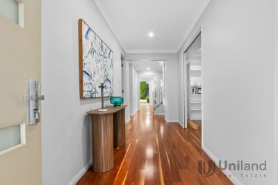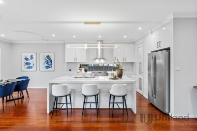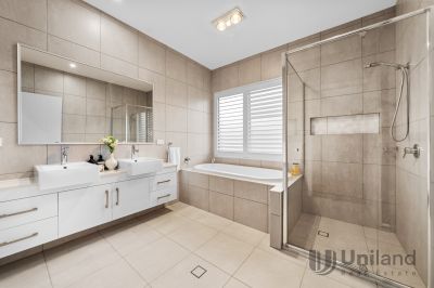 Expansive ceilings create a sense of openness as you move through the spacious family living and dining areas, seamlessly connecting to a state-of-the-art kitchen equipped with high quality appliances for the discerning chef. The home also features a formal lounge, a cozy rumpus room, and a dedicated study, all thoughtfully arranged across an impressive two-level layout. For entertainment, a spacious media room offers the ultimate home cinema experience. The covered alfresco area, opens to a beautifully landscaped garden with neat hedging and manicured lawns, perfect for outdoor living. With two expansive primary bedroom suites, high-end finishes throughout, and situated within the sought-after catchment area for top-tier primary and secondary schools, this residence offers an unmatched lifestyle.