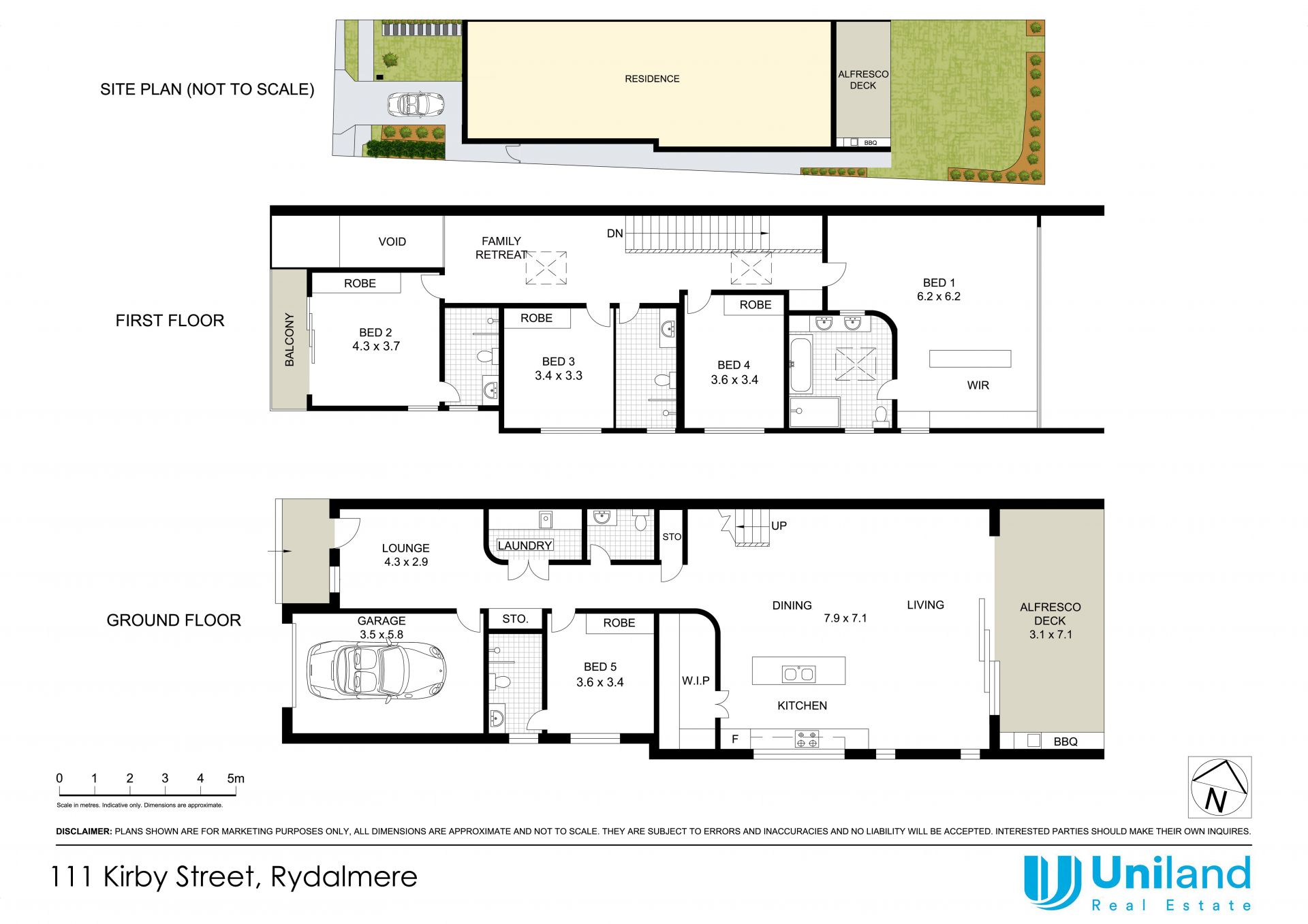 *Five bedrooms all with built-in-robes, three master suites, 4 luxury bathrooms