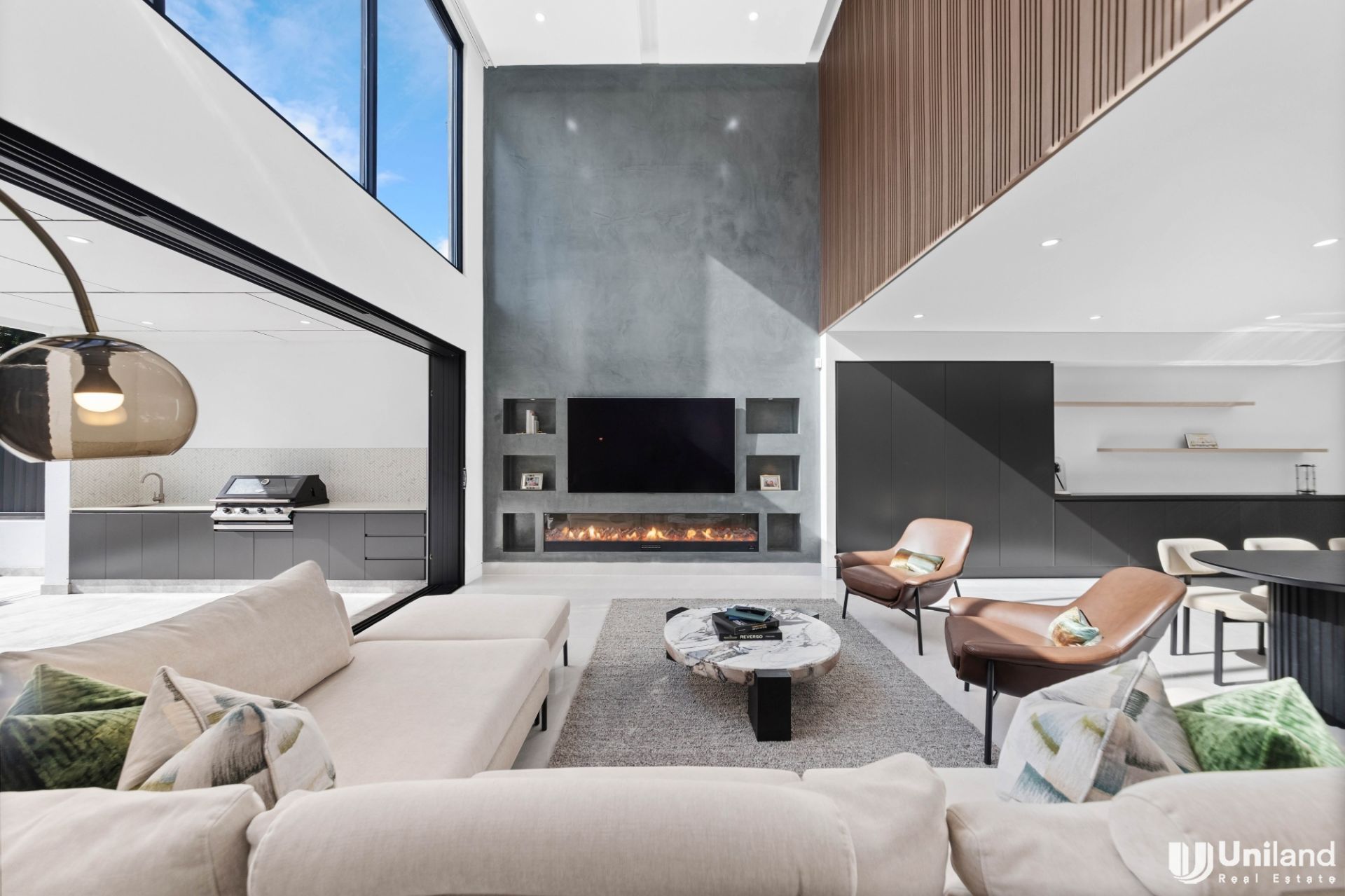 - Deluxe dining delivers a seamless display of cabinetry, generous living showcases a stunning fireplace and impressive wall-mounted tv