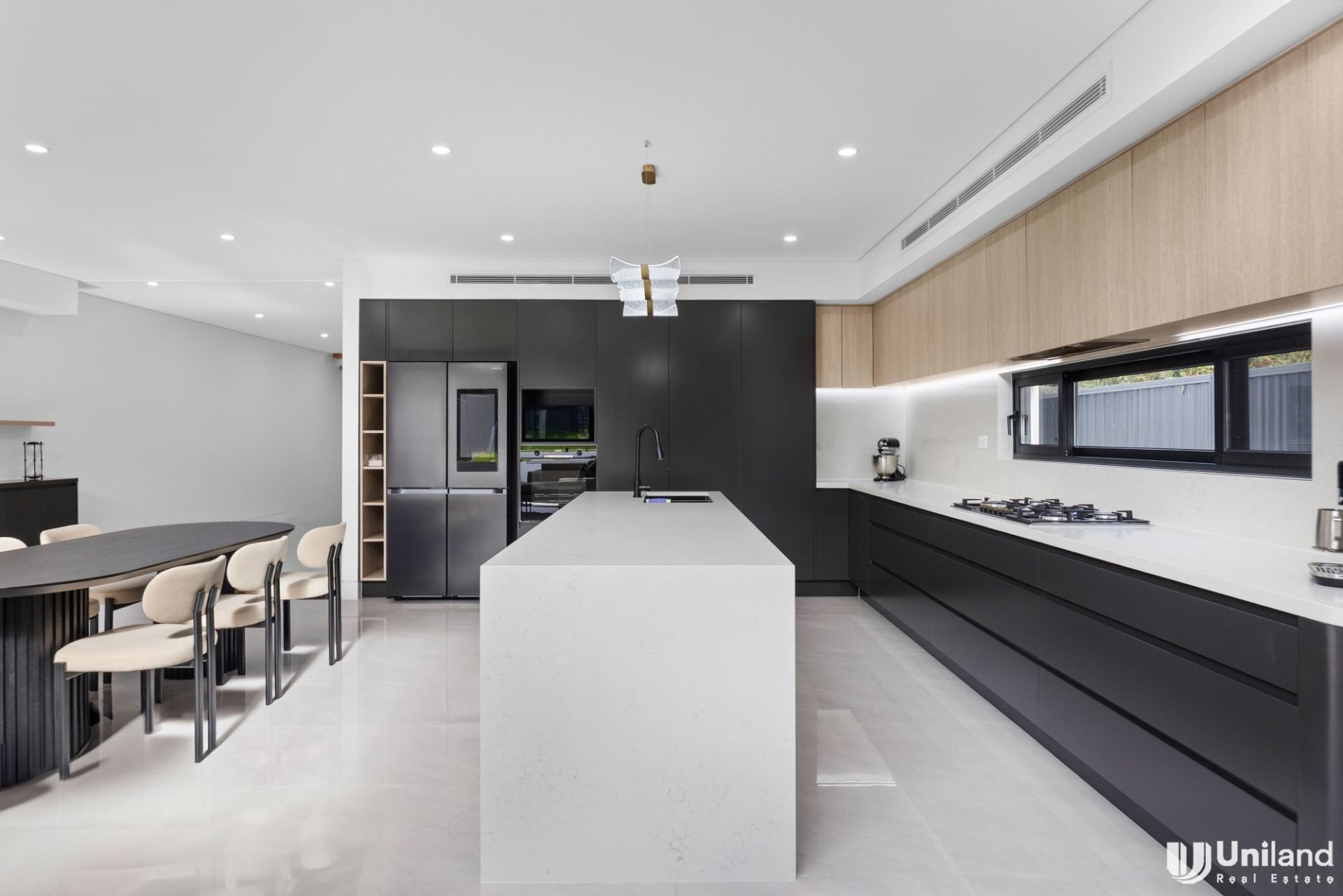 - Expertly finished kitchen is lined with stone benchtops, a Samsung Smart fridge and all-inclusive Boch appliances, including a 6-burner gas cooktop, dishwasher, and oven