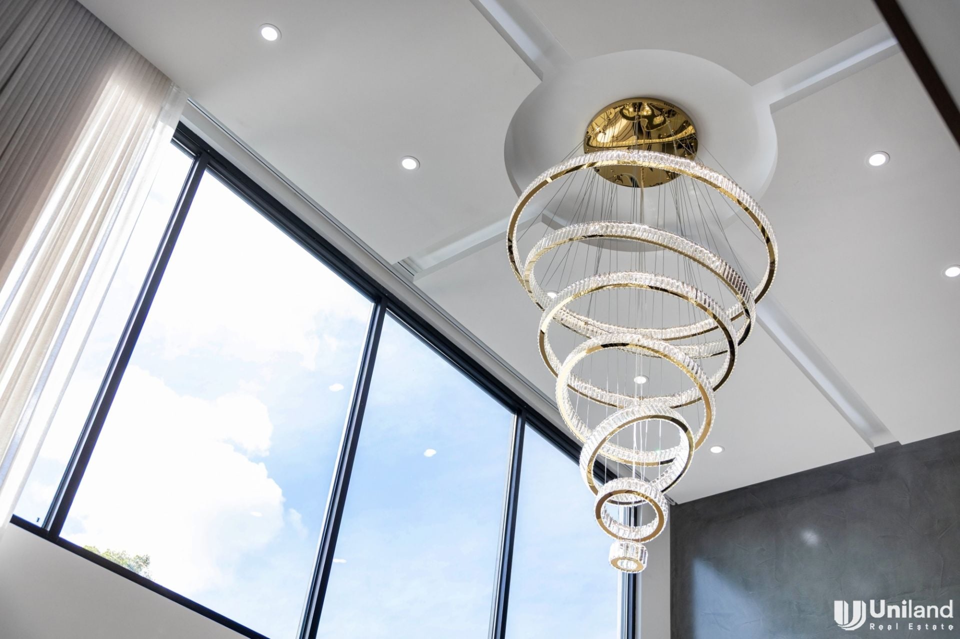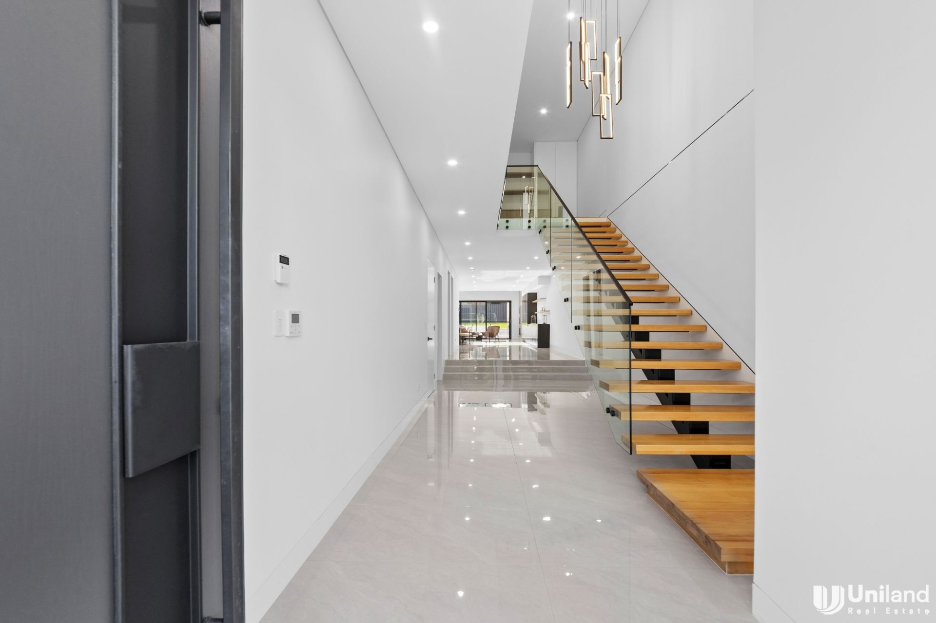 - Upgraded with electric curtains within the stunning open plan living domain spectacularly set under a breathtaking two-storey light-filled void, remote-controlled electric privacy frosting on front entrance windows