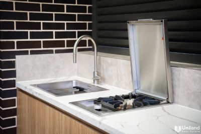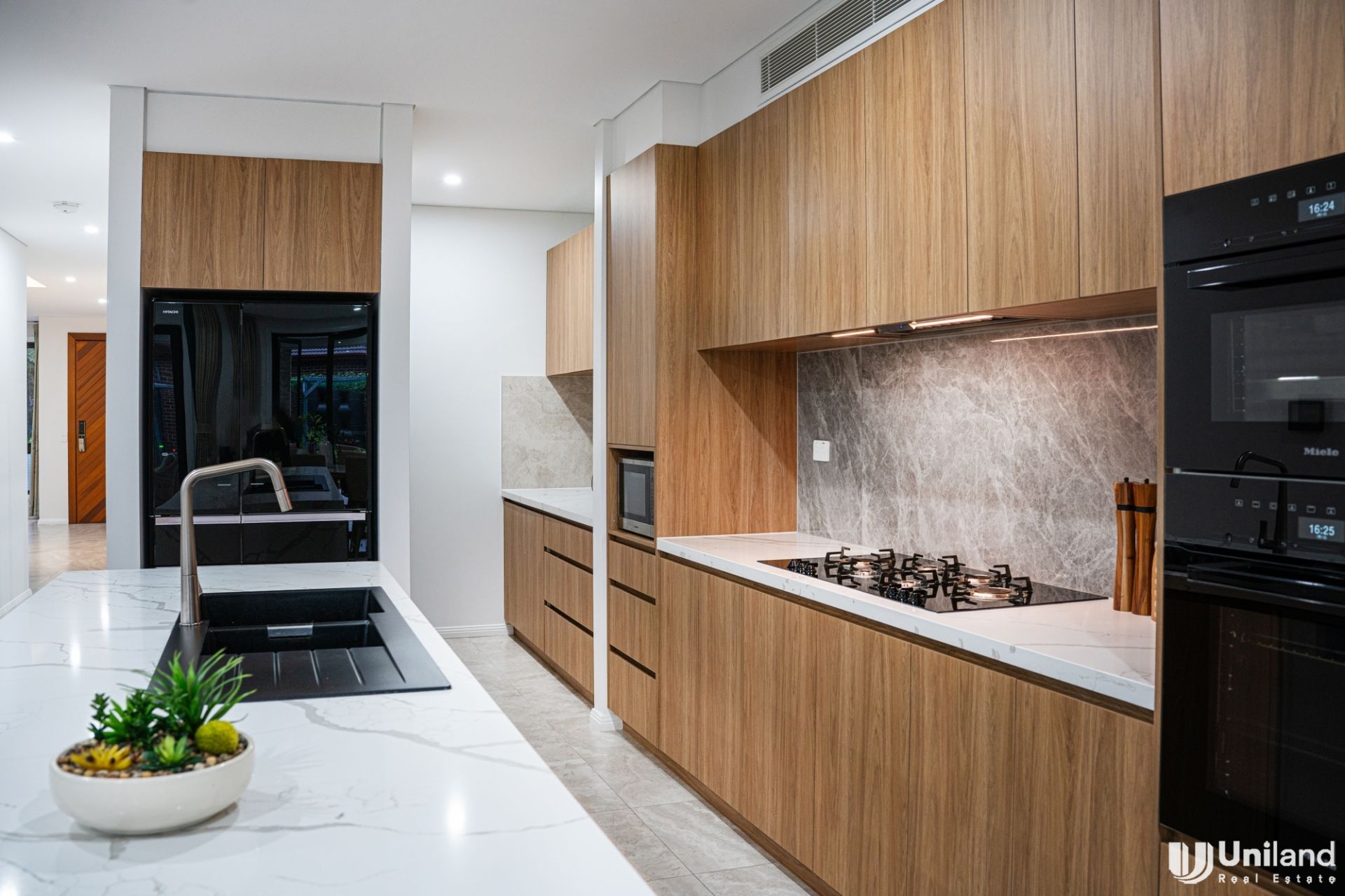 • Sleek, contemporary kitchen with premium appliances and stone benchtops