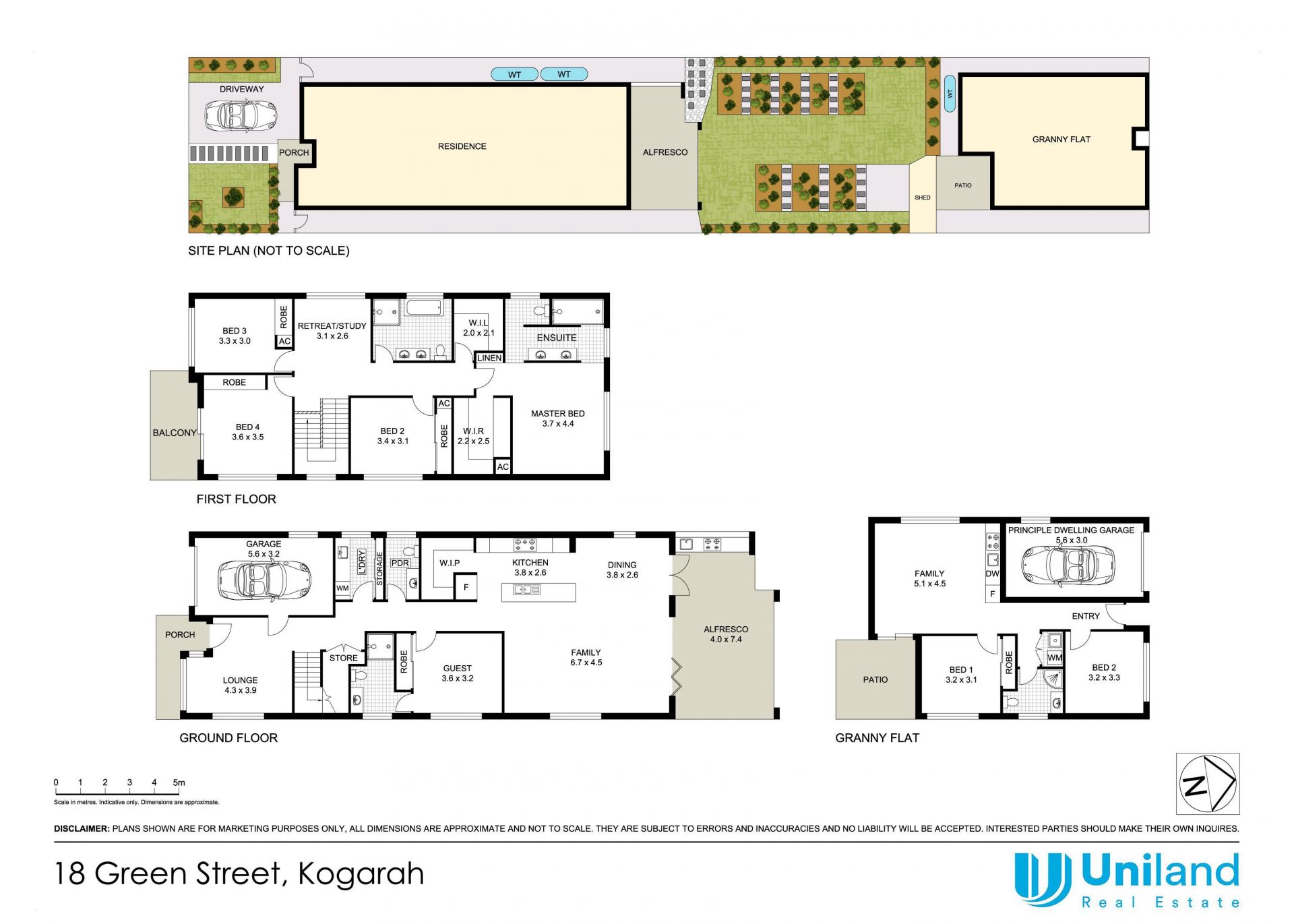 A rare opportunity to secure a stunning, near-new family residence offering the perfect blend of space, style, and flexibility in a sought-after location. Boasting 5 generously sized bedrooms, 3 modern bathrooms, and single garage, this beautifully appointed home is ideal for large families or multi-generational living. The standout feature is the self-contained modern 2-bedroom granny, perfect for extended family, guest accommodation, or rental income. Situated in a quiet, family-friendly street just moments from Kogarah town centre, quality schools, hospitals, shops, and public transport, this home offers unmatched convenience and lifestyle appeal. Whether you're upsizing, accommodating extended family, or seeking a savvy investment, 18 Green Street is a rare find that ticks all the boxes.