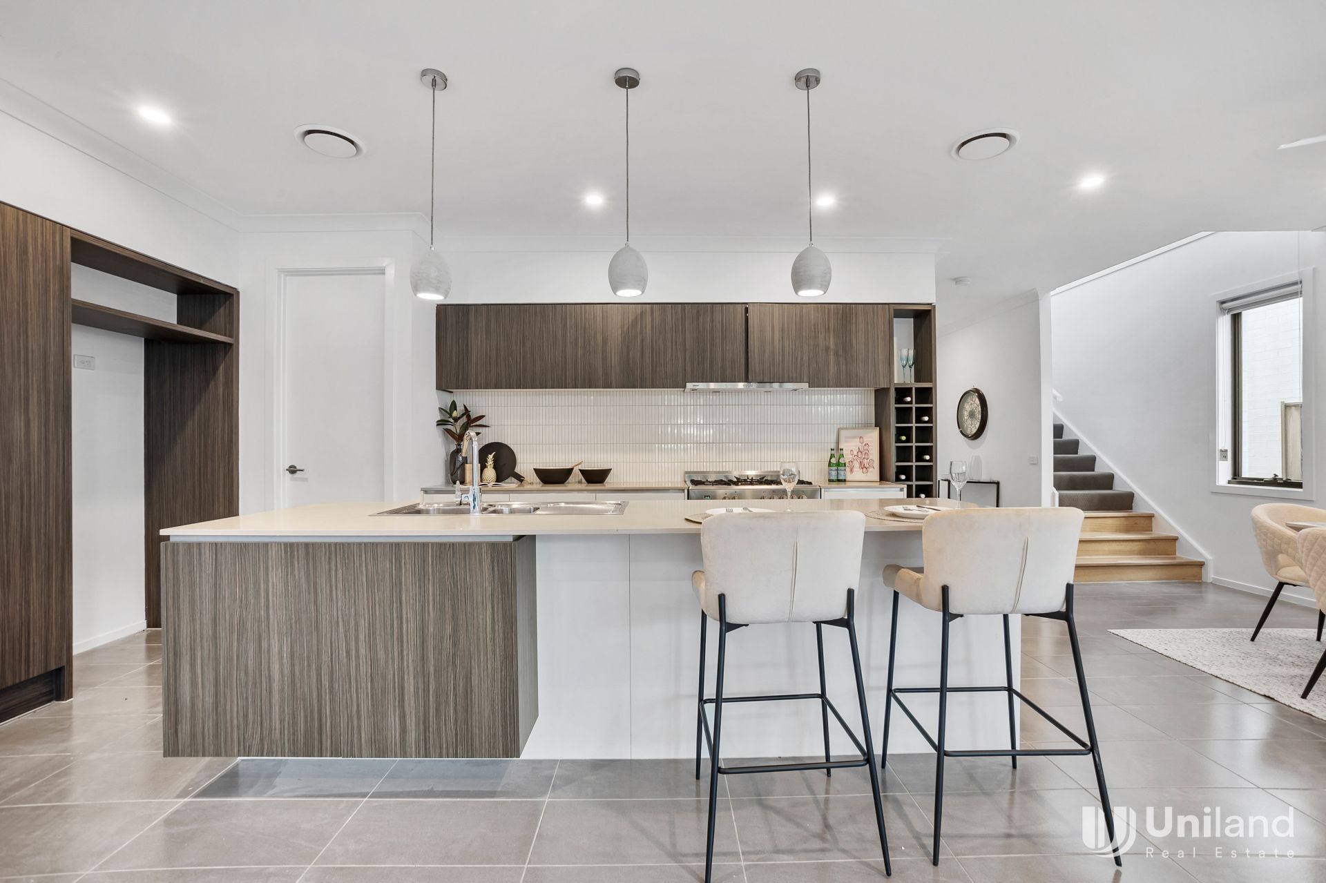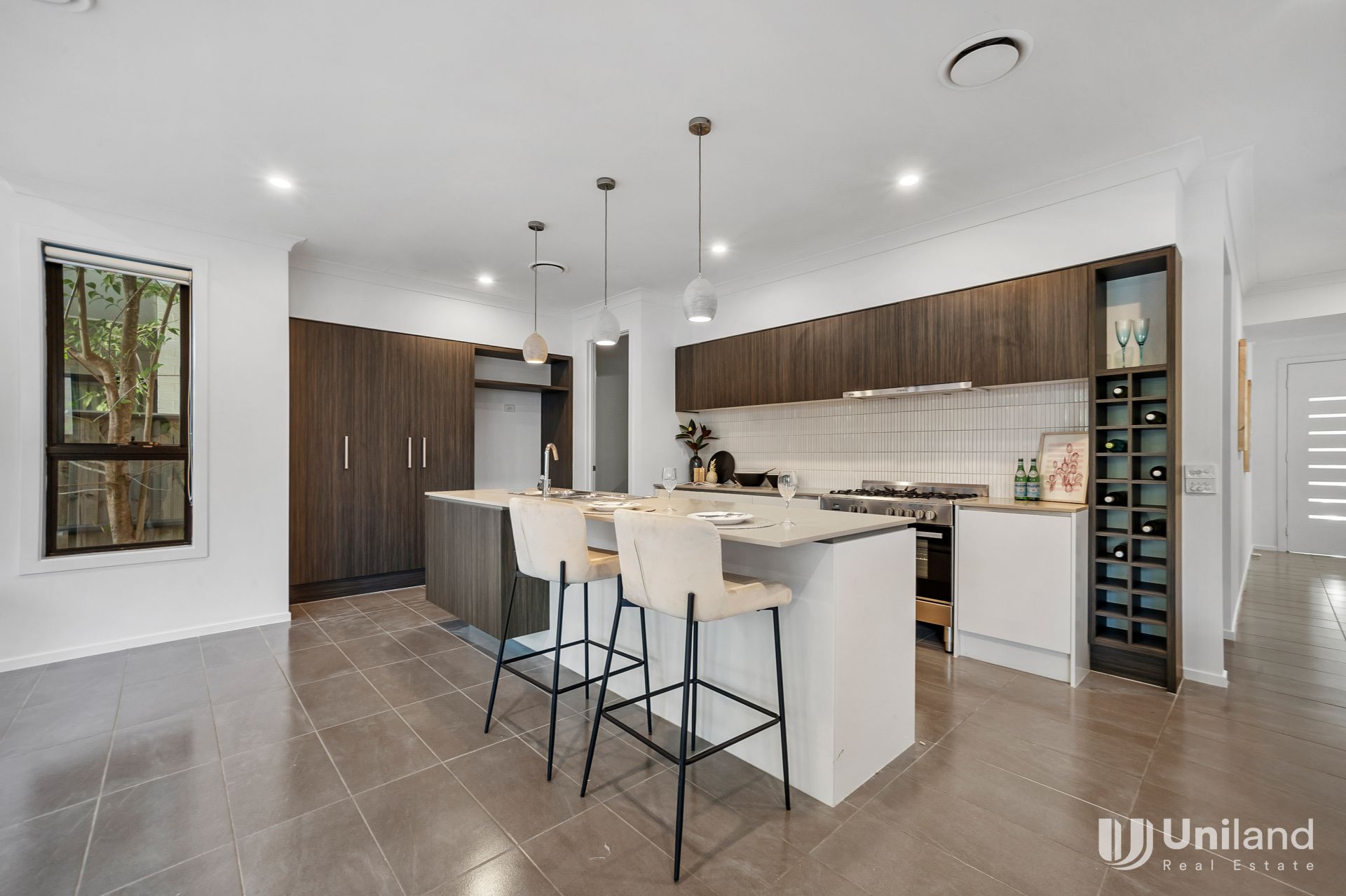 - Immaculate kitchen with stainless steel appliances, gas cooktop, stone island bench and ample storage space.