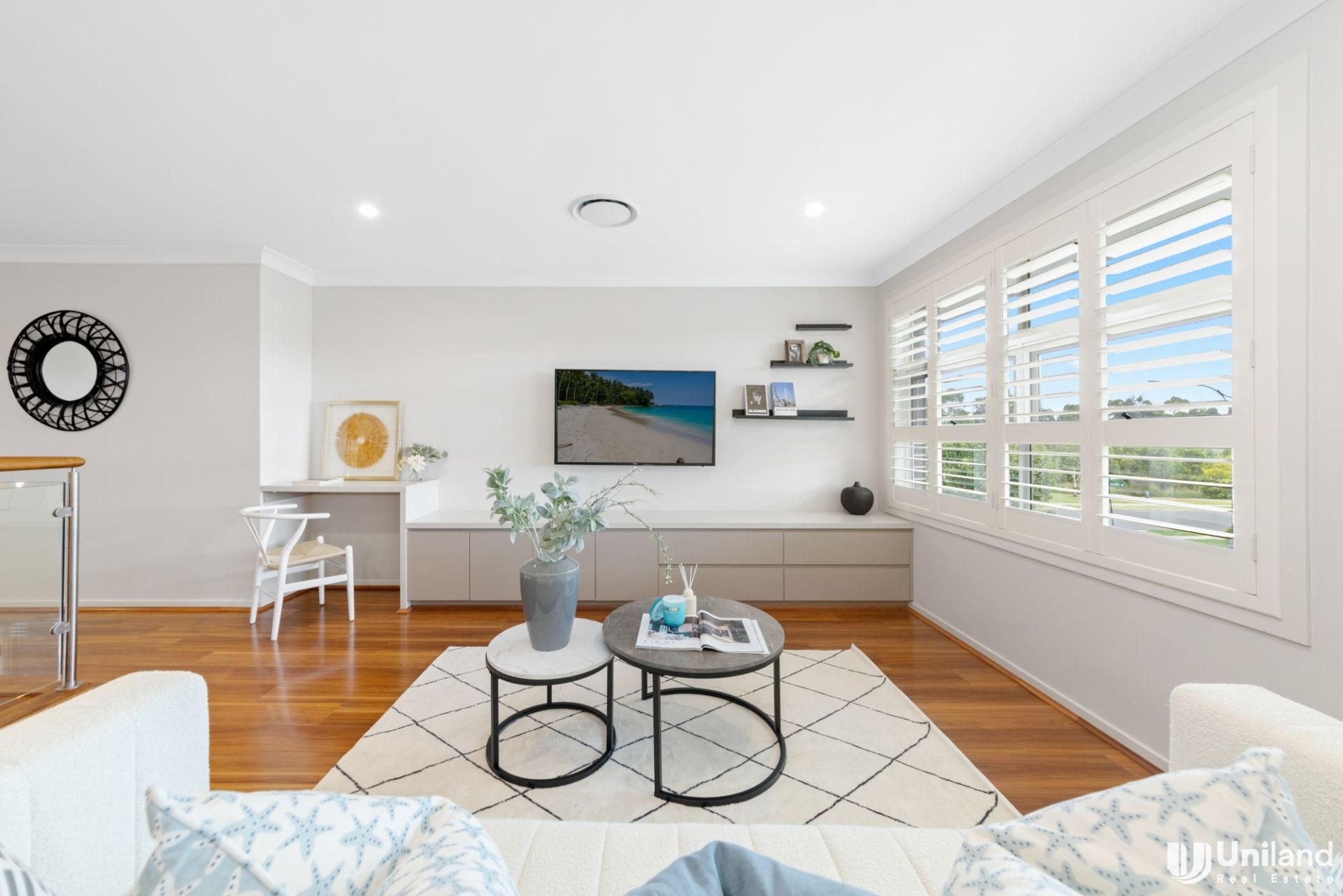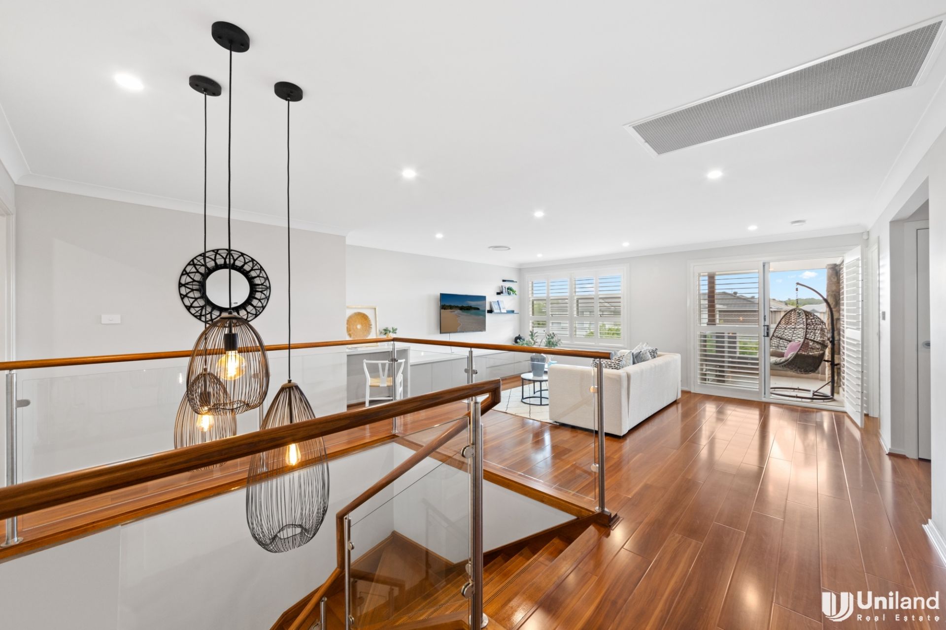 - Living spaces are enhanced with a media room, upper-level second lounge room and study nook