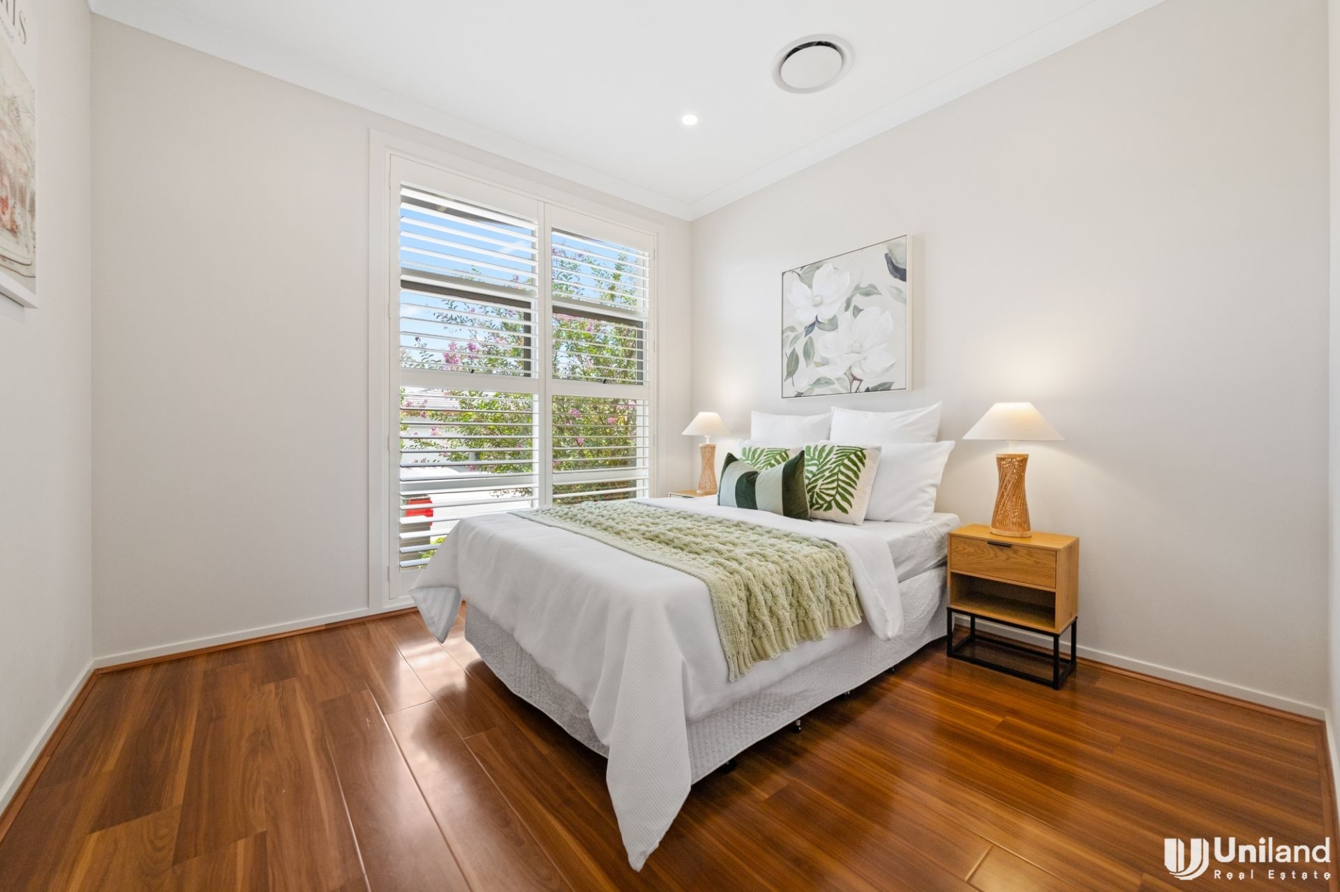 - Double garage offers versatility, finished with the same stylish floorboards found throughout the home, electric door, storage space, internal entry