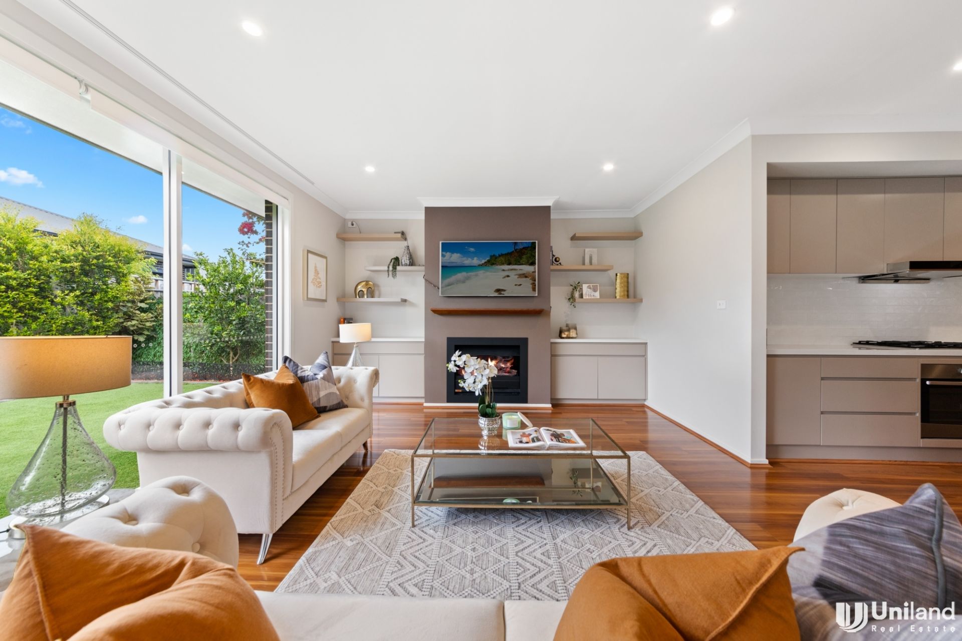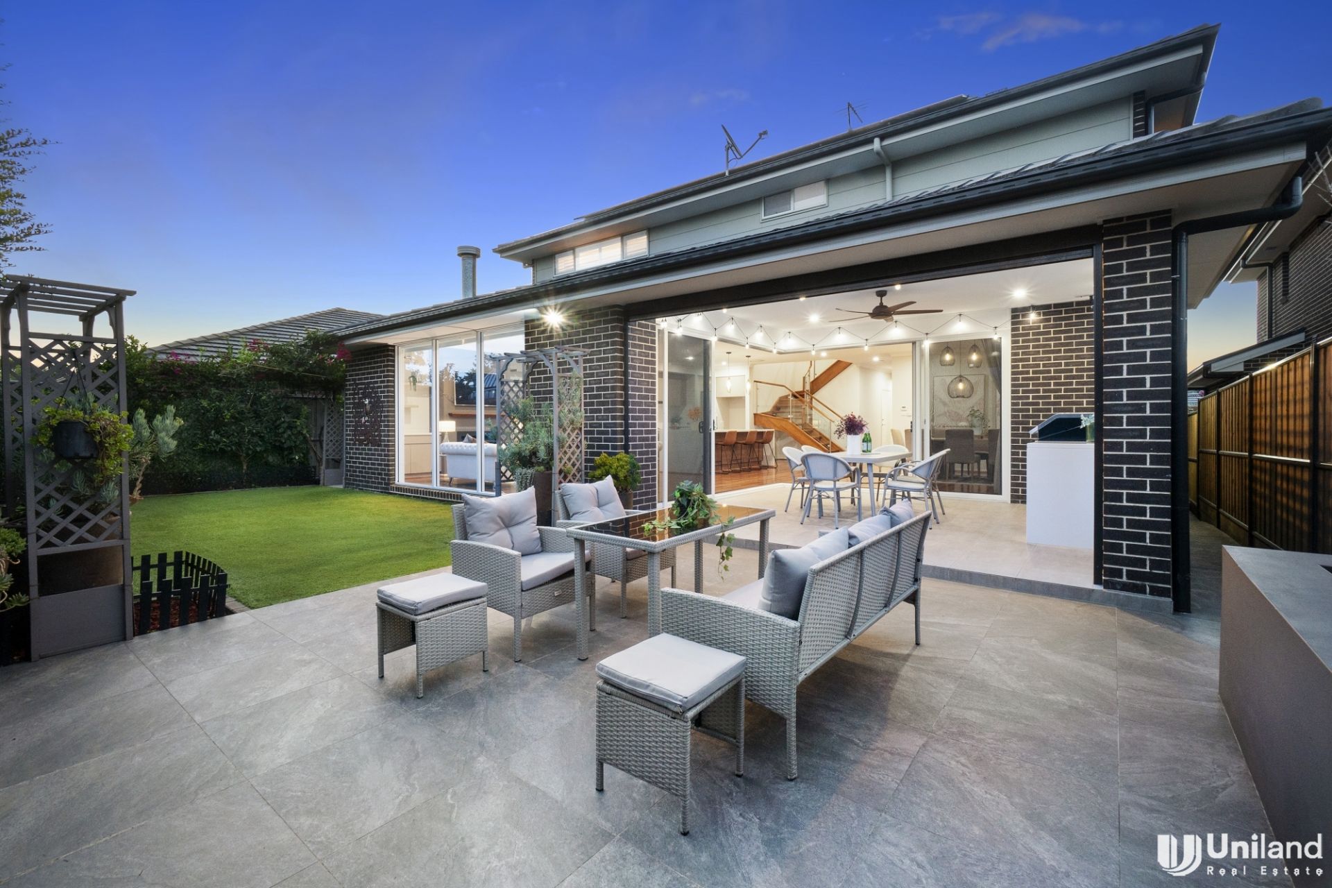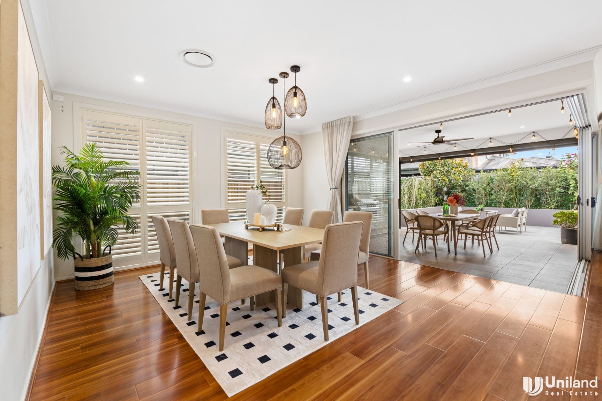 - Expansive open-plan living and dining expands outdoors to covered entertaining