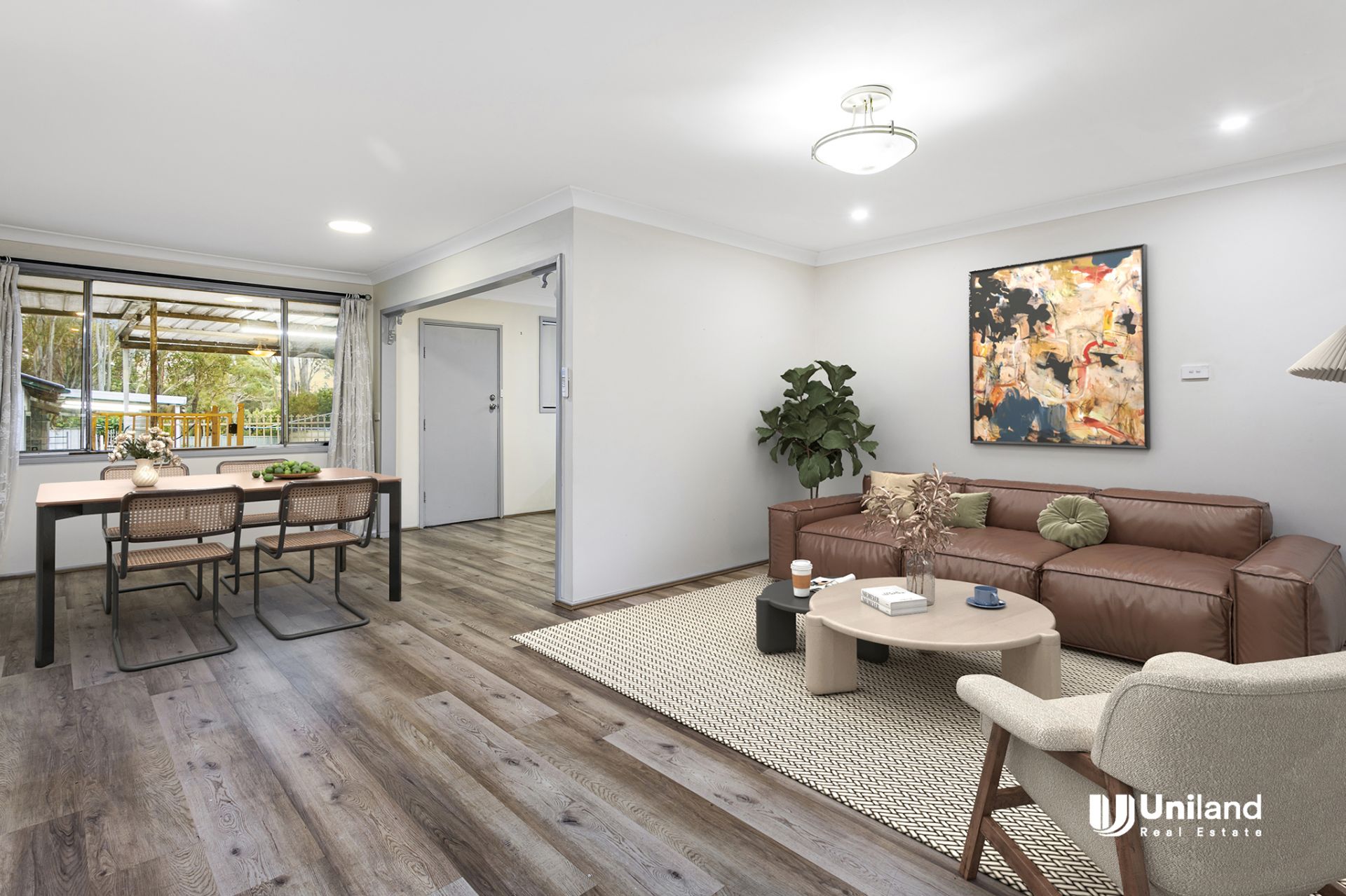 - Sun-drenched living and dining room
